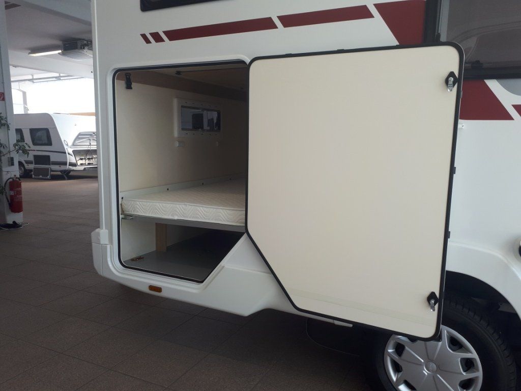 Ein Doppelbett zusätzlich im Heck hochklappbar