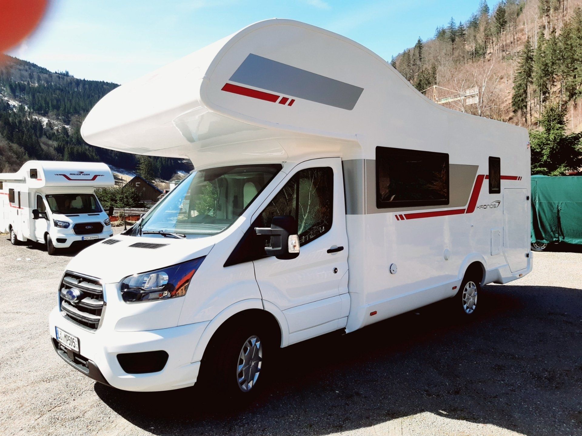 mit großem Alkovenbett, und zwei breiten Heckbetten, Rückfahrkamera, Multifunktionslenkrad, Fahrerhausklima, 120 Watt Solar